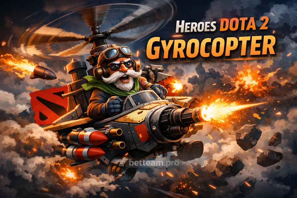 Gyrocopter — один из тех керри, которых боятся в поздней игре. Flak Cannon стреляет по всем, Call Down выкашивает тимфайты, и если дать ему нафармиться — всё становится неприятно. Но до BKB он хрупок, мана-зависим и умирает от правильного давления. Разбираем, кем давить, что покупать и почему иллюзии — это одно из лучших оружий против Гиро.